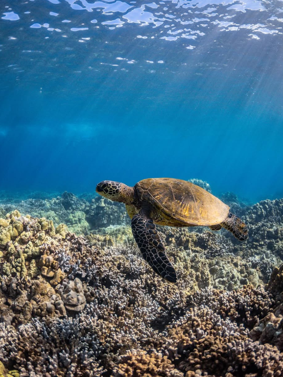 One possible snorkel location is Mala Wharf, a beloved Maui reef known for its thriving marine life and frequent Hawaiian green sea turtle sightings. The coral-covered structure creates a vibrant underwater habitat where turtles, tropical fish, and reef life gather—making it one of the island’s most memorable snorkeling spots.